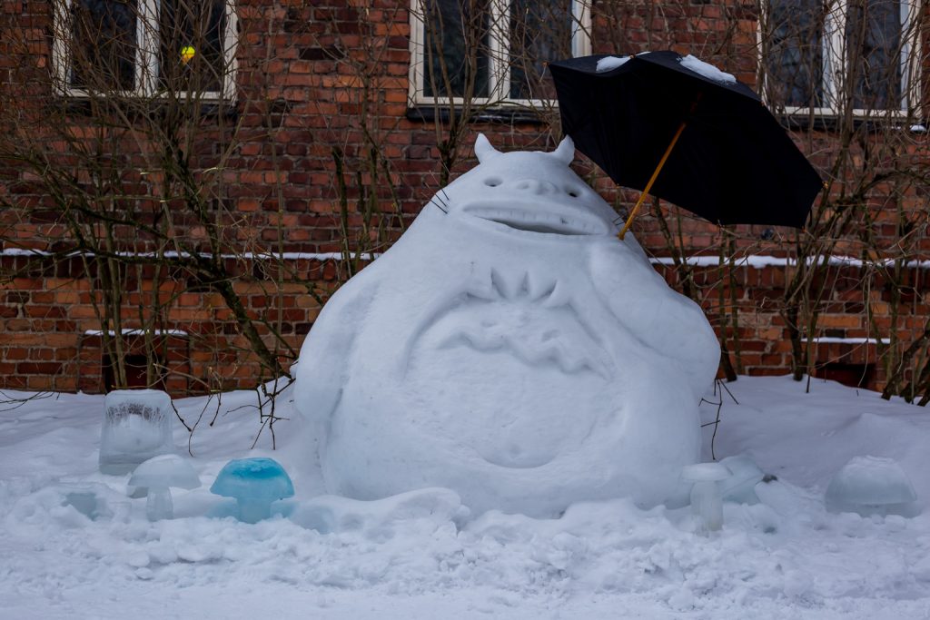 Tammikuussa 2021 Helsinkiin satoi kymmeniä senttejä lunta. Saarenkatu 15:n eteen tehty veistos Naapurini Totoro ilahdutti naapurustoa ja ohikulkijoita. Totoron veistivät Jenna Kunnas ja Asta Myllys. Veistos voitti HS:n lumiveistoskilpailun yli tuhannella äänellä, kun kaikkiaan ääniä annettiin 4000. Teoksen veistämisessä käytettiin apuna lusikkaa, puukkoa ja tapetointilastaa. Lue tarkemmin HS:n jutusta 21.1.2021.